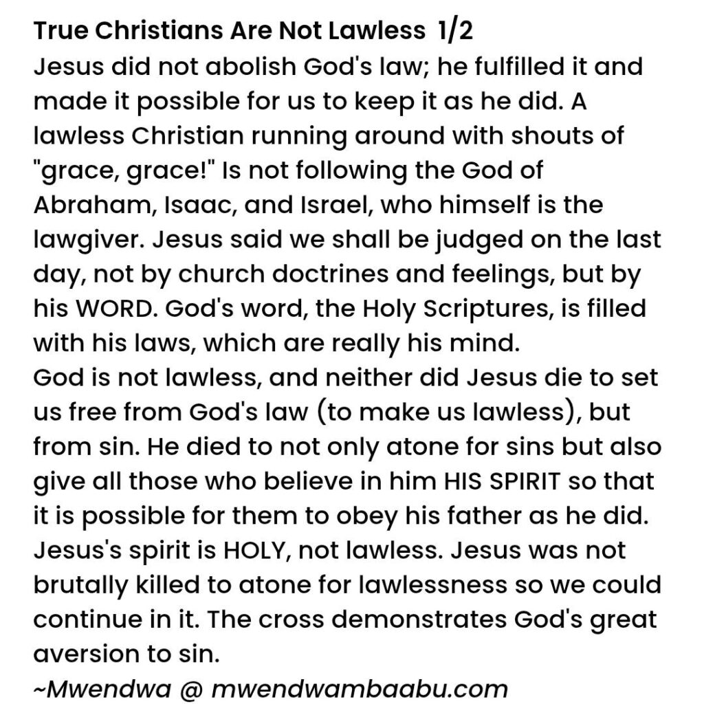 We need to be very careful in these last days of rampant doctrines of twisted grace, which despise and even completely do away with God’s law and say it is not for Christians. Jesus cannot fight against the Father. What the father spoke with his own mouth can not be abolished, and Jesus never came to correct his father or abolish his words but to establish them perfectly. God’s word endures forever. With God it is not yes and no. He means all he says.