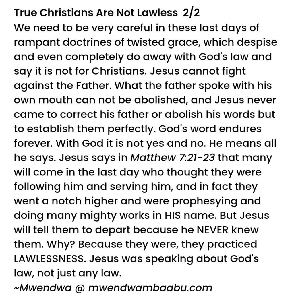 Jesus says in Matthew 7:21-23 that many will come in the last day who thought they were following him and serving him, and in fact they went a notch higher and were prophesying and doing many mighty works in HIS name. But Jesus will tell them to depart because he NEVER knew them. Why? Because they were, they practiced LAWLESSNESS. Jesus was speaking about God’s law, not just any law.
